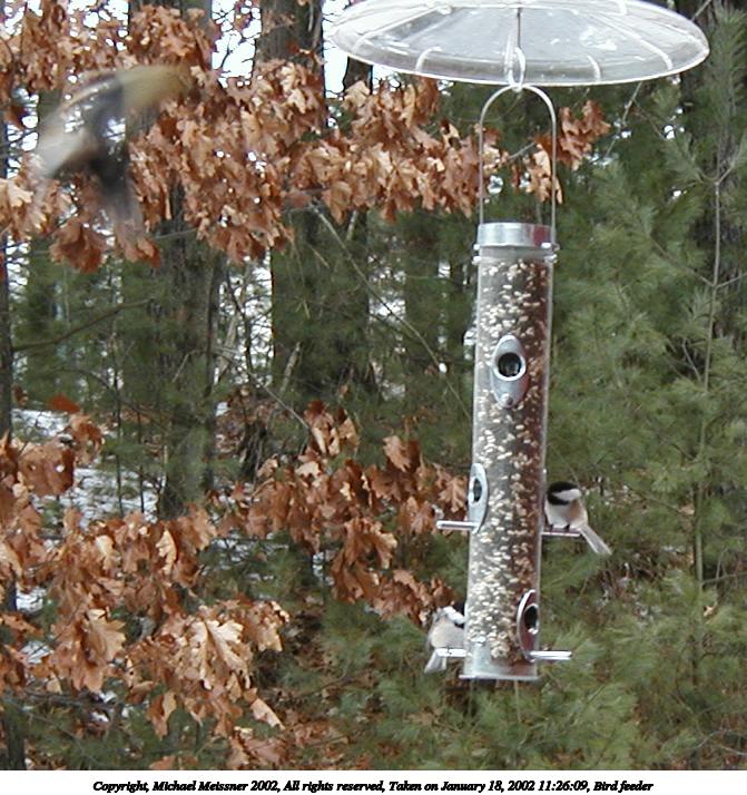 Picture #8: Bird feeder #8 682x865, 135,835 bytes (133K), (html file) Copyright, Michael Meissner 2002, All rights reserved Olympus D-510Z camera f/4.4, ISO 180, 1/100 sec, 15.7mm, auto mode, HQ, matrix metering, bias 1.0 35mm equivalent focal length 102.0mm Taken by Michael Meissner on January 15, 2002 10:07:03 Last modified on June 06, 2002 at 22:39 |
