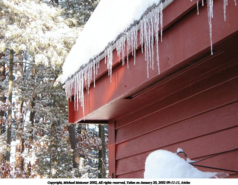 Picture #2: Icicles 800x622, 118,676 bytes (116K), (html file) Copyright, Michael Meissner 2002, All rights reserved Olympus D-510Z camera f/4.4, ISO 106, 1/100 sec, 15.7mm, auto mode, HQ, spot metering 35mm equivalent focal length 102.0mm Taken by Michael Meissner on January 20, 2002 09:11:11 Last modified on June 06, 2002 at 22:39 |
