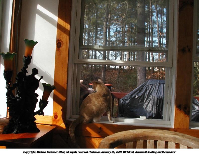 Picture #17: Aerosmith looking out the window 800x622, 93,717 bytes (92K), (html file) Copyright, Michael Meissner 2002, All rights reserved Olympus D-510Z camera f/2.8, ISO 100, 1/160 sec, 5.6mm, auto mode, HQ, matrix metering 35mm equivalent focal length 37.0mm Taken by Michael Meissner on January 26, 2002 10:58:08 Last modified on June 06, 2002 at 22:39 |