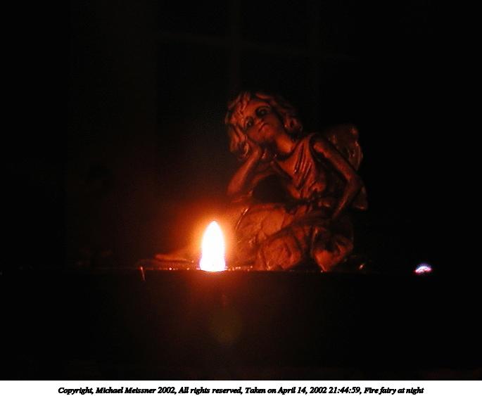 Picture #63: Fire fairy 800x622, 87,534 bytes (86K), (html file) Copyright, Michael Meissner 2002, All rights reserved Olympus C-2100UZ camera f/2.8, ISO 100, flash, 1/60 sec, 15.2mm, auto mode, SHQ, matrix metering 35mm equivalent focal length 84.0mm Taken by Michael Meissner on April 13, 2002 21:06:45 Last modified on May 29, 2002 at 21:30 |