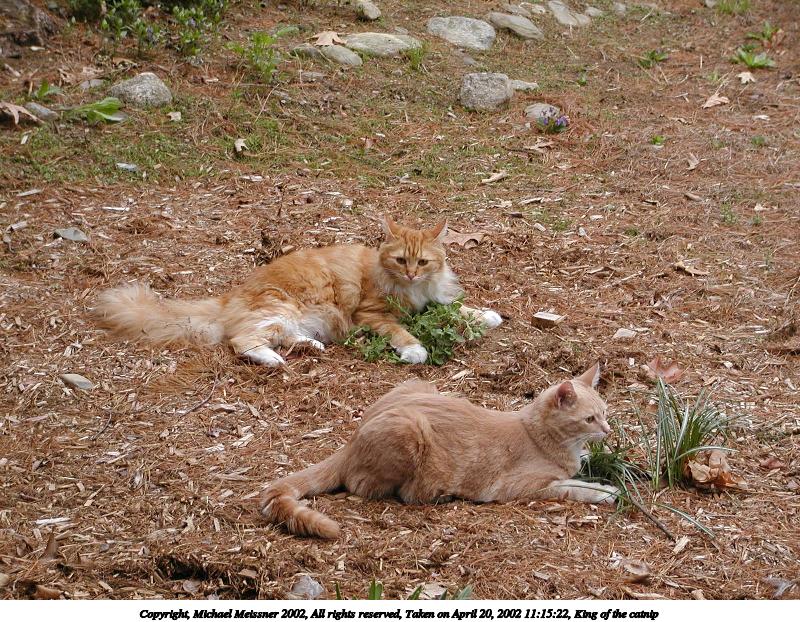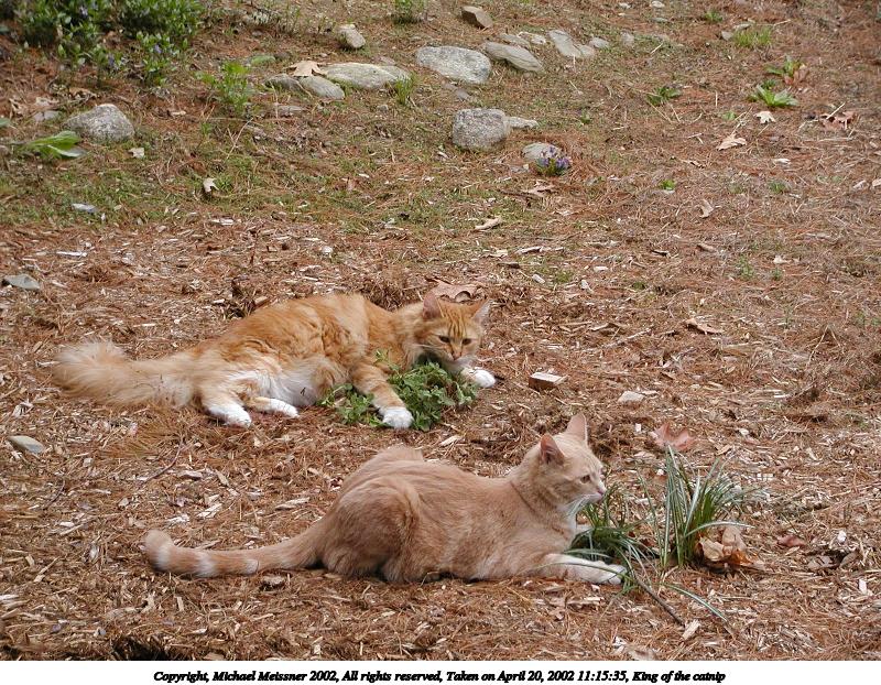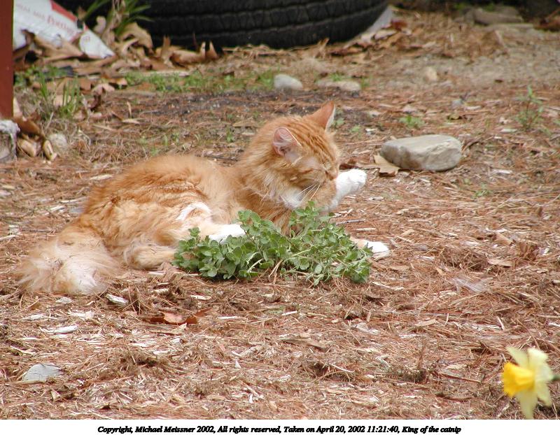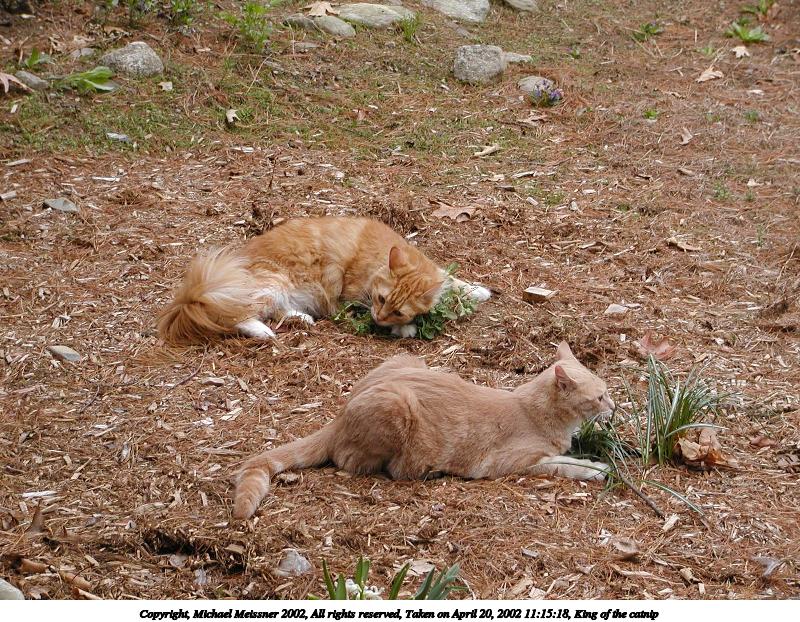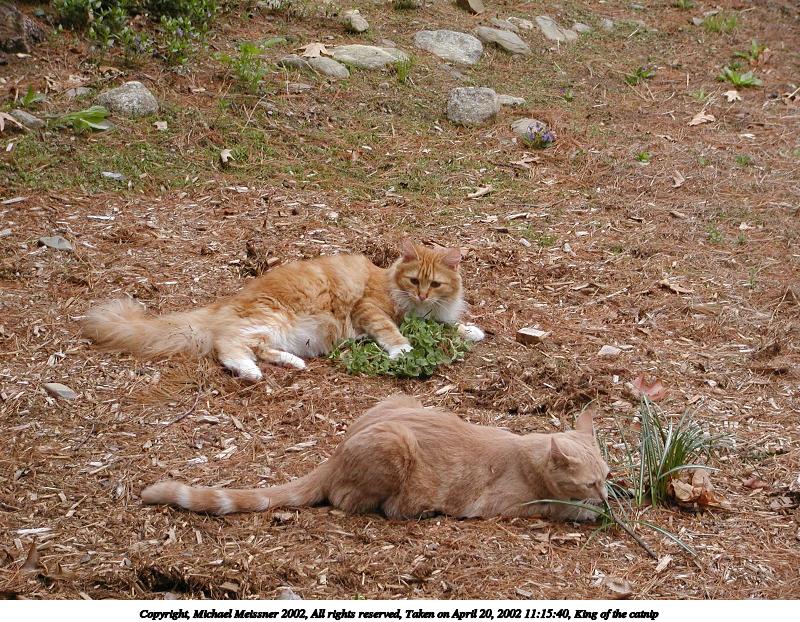 Picture #31: King of the catnip #9 800x622, 143,976 bytes (141K), (html file) Copyright, Michael Meissner 2002, All rights reserved Olympus C-2100UZ camera f/2.8, ISO 100, 1/250 sec, 39.3mm, auto mode, SHQ, spot metering 35mm equivalent focal length 218.0mm Taken by Michael Meissner on April 20, 2002 11:17:16 Last modified on May 29, 2002 at 21:30 Shutter speed of 1/125 or 1/250 may indicate use of flash |
