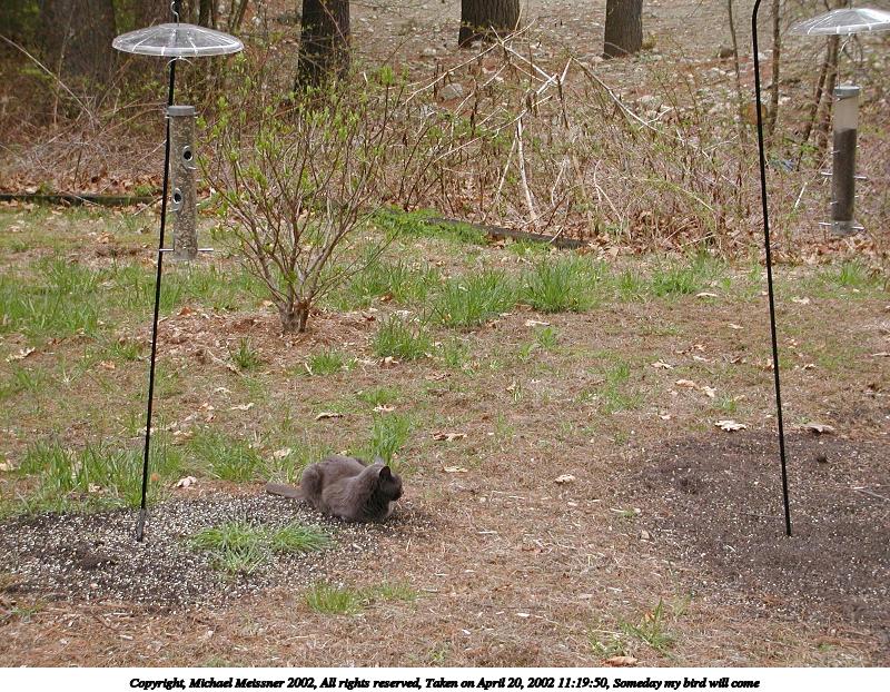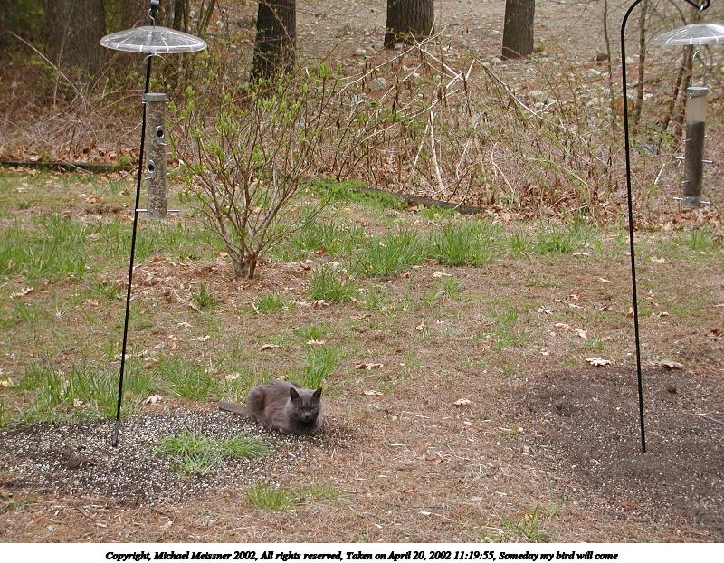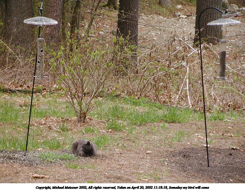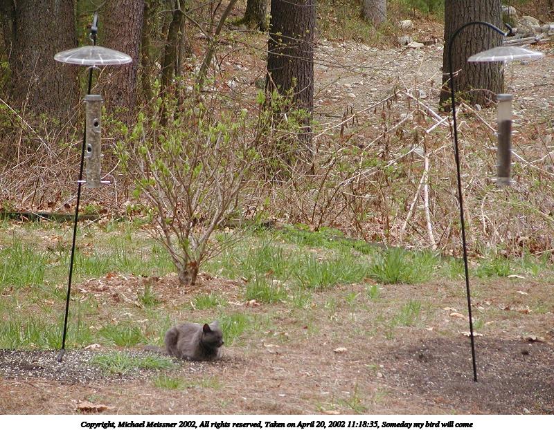 Picture #20: Someday my bird will come 800x622, 181,733 bytes (178K), (html file) Copyright, Michael Meissner 2002, All rights reserved Olympus C-2100UZ camera f/2.8, ISO 100, 1/250 sec, 31.1mm, auto mode, SHQ, spot metering 35mm equivalent focal length 173.0mm Taken by Michael Meissner on April 20, 2002 11:18:18 Last modified on May 29, 2002 at 21:30 Shutter speed of 1/125 or 1/250 may indicate use of flash |