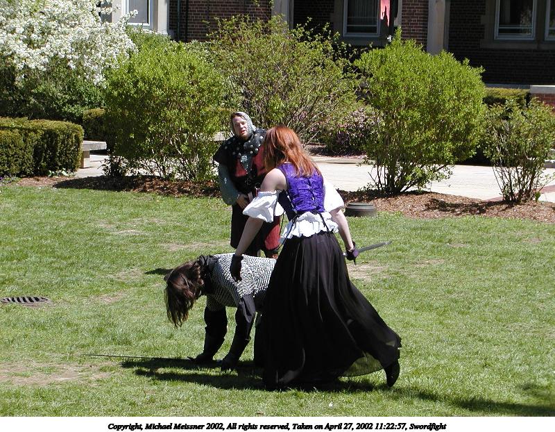 Picture #3: Swordfight 800x622, 143,475 bytes (141K), (html file) Copyright, Michael Meissner 2002, All rights reserved Olympus C-2100UZ camera f/3.5, ISO 100, 1/800 sec, 24.2mm, s-prog mode, SHQ, matrix metering 35mm equivalent focal length 134.0mm Taken by Michael Meissner on April 27, 2002 11:22:50 Last modified on May 29, 2002 at 21:30 |