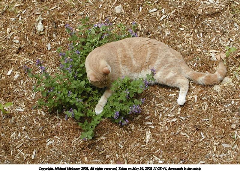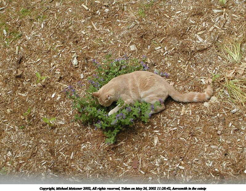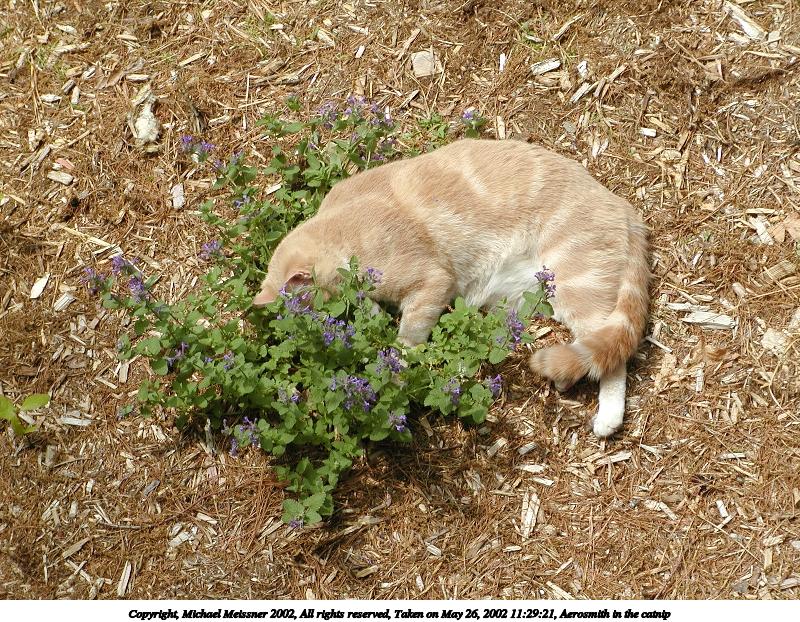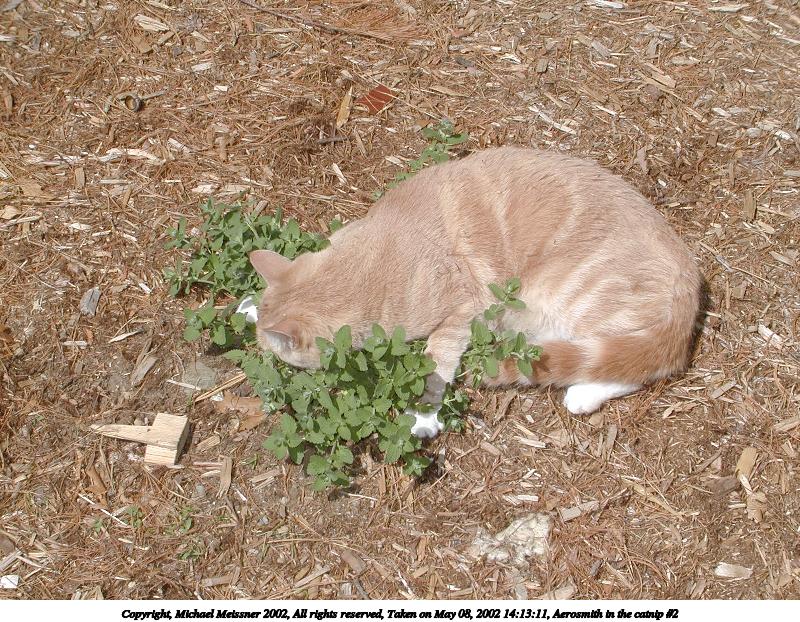 Picture #12: Aerosmith in the catnip #4 800x622, 207,416 bytes (203K), (html file) Copyright, Michael Meissner 2002, All rights reserved Olympus C-2100UZ camera f/4.5, ISO 100, 1/500 sec, 26.2mm, auto mode, SHQ, sunny, matrix metering 35mm equivalent focal length 145.0mm Taken by Michael Meissner on May 26, 2002 11:29:21 Last modified on May 29, 2002 at 21:31 |