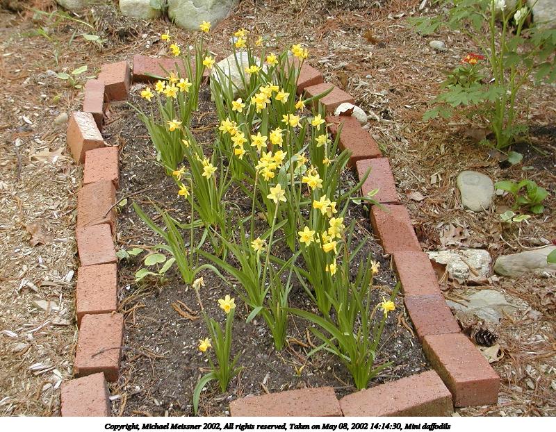 Picture #143: Mini daffodils 800x622, 176,796 bytes (173K), (html file) Copyright, Michael Meissner 2002, All rights reserved Olympus C-2100UZ camera f/2.8, ISO 100, 1/125 sec, 13.0mm, s-prog mode, SHQ, matrix metering 35mm equivalent focal length 72.0mm Taken by Michael Meissner on May 08, 2002 14:14:30 Last modified on May 29, 2002 at 21:30 Shutter speed of 1/125 or 1/250 may indicate use of flash |