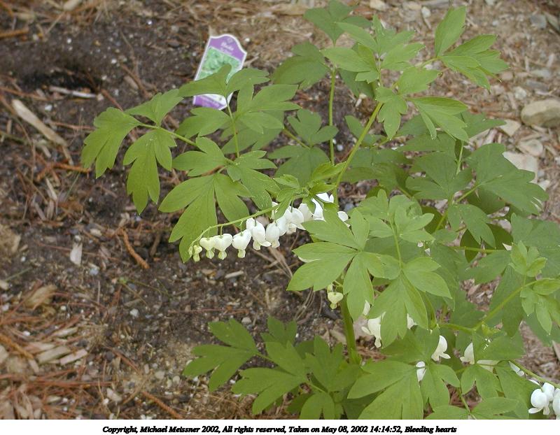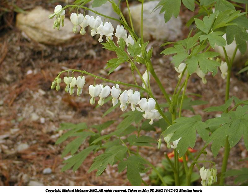 Picture #142: Bleeding hearts 800x622, 96,681 bytes (95K), (html file) Copyright, Michael Meissner 2002, All rights reserved Olympus C-2100UZ camera f/2.8, ISO 100, 1/125 sec, 17.9mm, s-prog mode, SHQ, matrix metering 35mm equivalent focal length 99.0mm Taken by Michael Meissner on May 08, 2002 14:14:52 Last modified on May 29, 2002 at 21:30 Shutter speed of 1/125 or 1/250 may indicate use of flash |