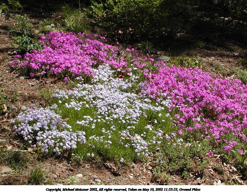 Picture #104: Ground Phlox #6 800x622, 170,014 bytes (167K), (html file) Copyright, Michael Meissner 2002, All rights reserved Olympus C-2100UZ camera f/2.8, ISO 100, 1/125 sec, 11.3mm, manual mode, SHQ, matrix metering 35mm equivalent focal length 63.0mm Taken by Michael Meissner on May 11, 2002 15:10:03 Last modified on May 29, 2002 at 21:30 Shutter speed of 1/125 or 1/250 may indicate use of flash |