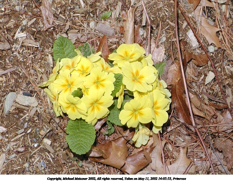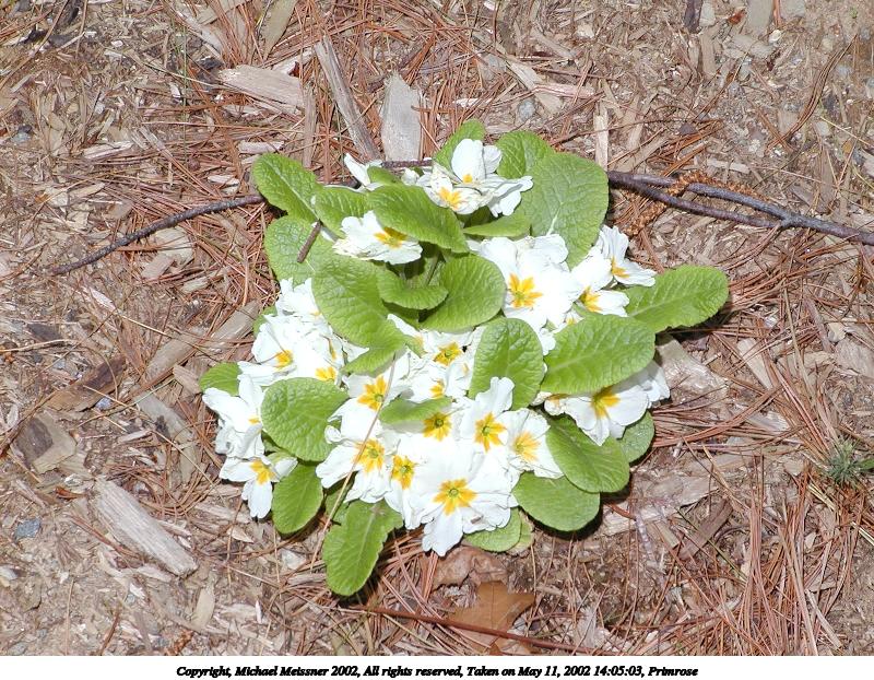 Picture #121: Primrose #3 800x622, 169,979 bytes (166K), (html file) Copyright, Michael Meissner 2002, All rights reserved Olympus C-2100UZ camera f/5.6, ISO 100, 1/125 sec, 27.3mm, manual mode, SHQ, matrix metering 35mm equivalent focal length 151.0mm Taken by Michael Meissner on May 11, 2002 14:05:53 Last modified on May 29, 2002 at 21:30 Shutter speed of 1/125 or 1/250 may indicate use of flash |