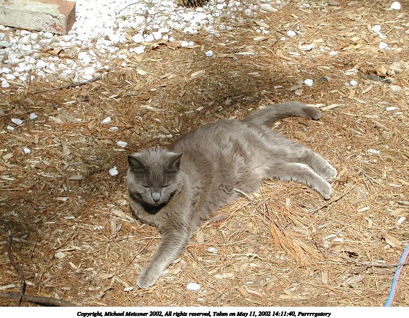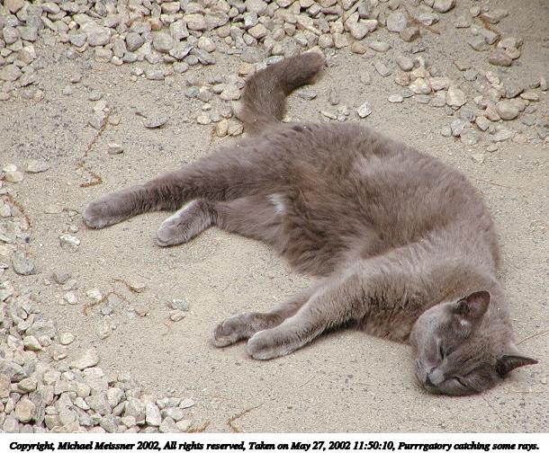 Picture #10: Purrrgatory catching some rays. 610x504, 89,159 bytes (88K), (html file) Copyright, Michael Meissner 2002, All rights reserved Olympus C-2100UZ camera f/3.2, ISO 100, 1/500 sec, 54.0mm, auto mode, SHQ, matrix metering 35mm equivalent focal length 300.0mm Taken by Michael Meissner on May 27, 2002 11:50:10 Last modified on May 29, 2002 at 21:31 |