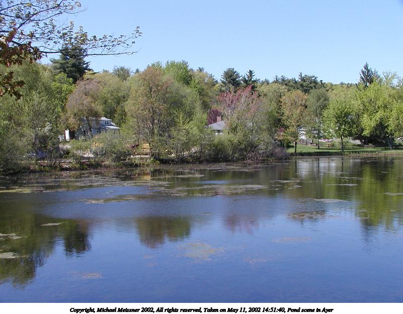Picture #113: Pond scene in Ayer #2 800x622, 103,028 bytes (101K), (html file) Copyright, Michael Meissner 2002, All rights reserved Olympus C-2100UZ camera f/5.0, ISO 100, 1/400 sec, 9.4mm, auto mode, SHQ, matrix metering 35mm equivalent focal length 52.0mm Taken by Michael Meissner on May 11, 2002 14:51:40 Last modified on May 29, 2002 at 21:30 |