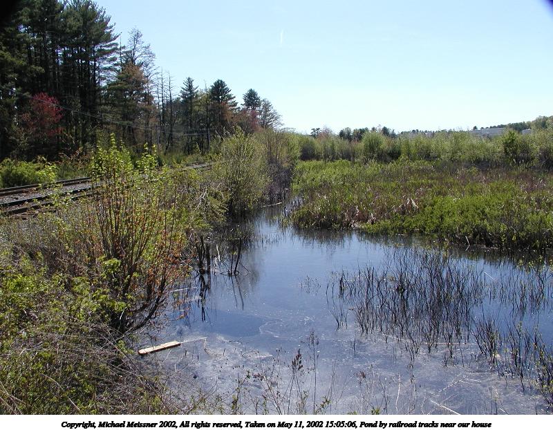 Picture #109: Pond by railroad tracks near our house #2 800x622, 140,058 bytes (137K), (html file) Copyright, Michael Meissner 2002, All rights reserved Olympus C-2100UZ camera f/5.6, ISO 100, 1/500 sec, 7.0mm, auto mode, SHQ, matrix metering 35mm equivalent focal length 39.0mm Taken by Michael Meissner on May 11, 2002 15:05:06 Last modified on May 29, 2002 at 21:30 |
