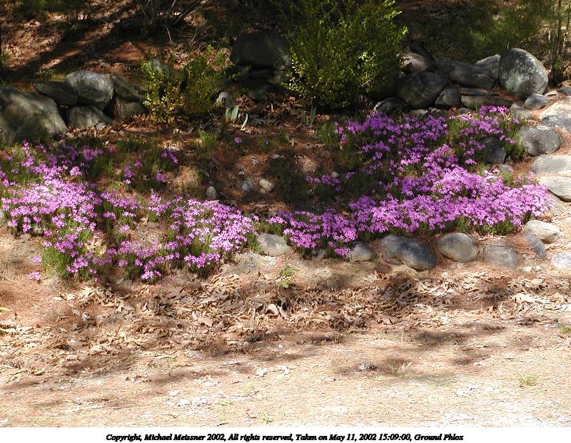 Picture #105: Ground Phlox #5 800x622, 176,488 bytes (173K), (html file) Copyright, Michael Meissner 2002, All rights reserved Olympus C-2100UZ camera f/2.8, ISO 100, 1/125 sec, 11.3mm, manual mode, SHQ, matrix metering 35mm equivalent focal length 63.0mm Taken by Michael Meissner on May 11, 2002 15:09:56 Last modified on May 29, 2002 at 21:30 Shutter speed of 1/125 or 1/250 may indicate use of flash |