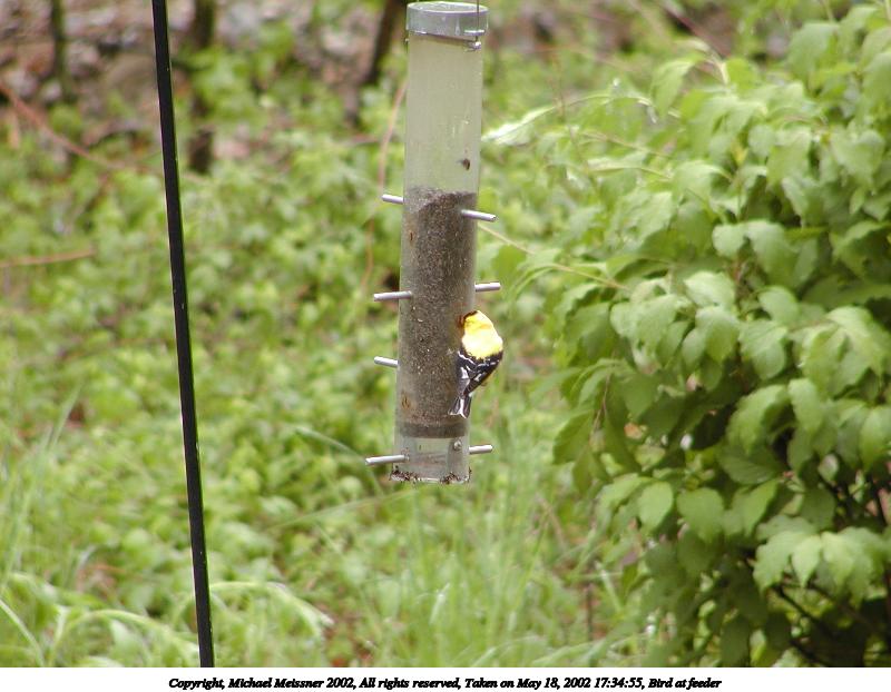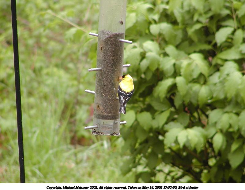 Picture #73: Bird at feeder #2 800x622, 71,496 bytes (70K), (html file) Copyright, Michael Meissner 2002, All rights reserved Olympus C-2100UZ camera f/3.5, ISO 100, 1/80 sec, 70.0mm, auto mode, SHQ, matrix metering 35mm equivalent focal length 388.0mm Taken by Michael Meissner on May 18, 2002 17:35:01 Last modified on May 29, 2002 at 21:31 |