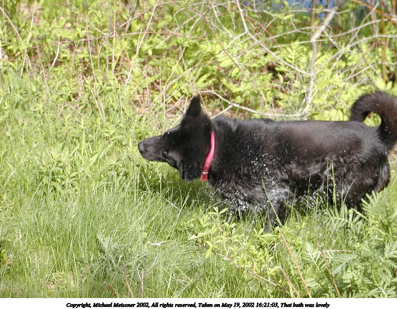 Picture #63: That bath was lovely 800x622, 147,754 bytes (145K), (html file) Copyright, Michael Meissner 2002, All rights reserved Olympus C-2100UZ camera f/3.2, ISO 100, 1/500 sec, 19.3mm, auto mode, SHQ, matrix metering 35mm equivalent focal length 107.0mm Taken by Michael Meissner on May 19, 2002 16:21:03 Last modified on May 29, 2002 at 21:31 |