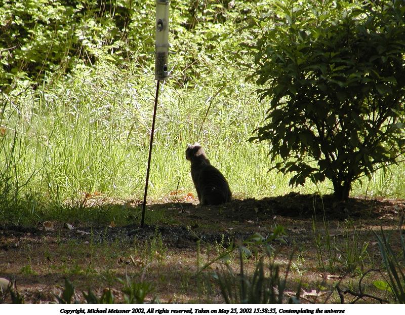Picture #44: Contemplating the universe 800x622, 170,789 bytes (167K), (html file) Copyright, Michael Meissner 2002, All rights reserved Olympus C-2100UZ camera f/3.2, ISO 100, 1/500 sec, 57.3mm, auto mode, SHQ, matrix metering 35mm equivalent focal length 318.0mm Taken by Michael Meissner on May 25, 2002 15:38:35 Last modified on May 29, 2002 at 21:31 |