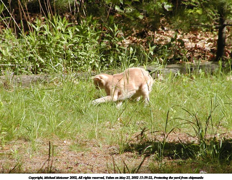 Picture #42: Protecting the yard from chipmunks 800x622, 178,526 bytes (175K), (html file) Copyright, Michael Meissner 2002, All rights reserved Olympus C-2100UZ camera f/4.0, ISO 100, 1/650 sec, 65.2mm, auto mode, SHQ, matrix metering 35mm equivalent focal length 362.0mm Taken by Michael Meissner on May 25, 2002 15:39:22 Last modified on May 29, 2002 at 21:31 |
