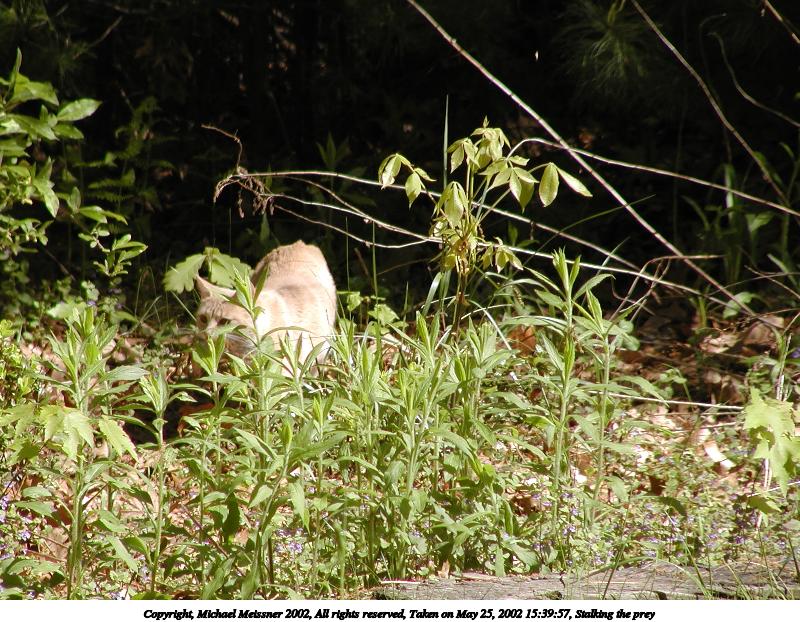 Picture #38: Stalking the prey #4 610x426, 67,088 bytes (66K), (html file) Copyright, Michael Meissner 2002, All rights reserved Olympus C-2100UZ camera f/5.0, ISO 100, 1/400 sec, 37.4mm, auto mode, SHQ, matrix metering 35mm equivalent focal length 208.0mm Taken by Michael Meissner on May 25, 2002 15:41:54 Last modified on May 29, 2002 at 21:31 |