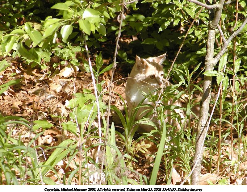Picture #39: Stalking the prey #3 800x622, 169,305 bytes (166K), (html file) Copyright, Michael Meissner 2002, All rights reserved Olympus C-2100UZ camera f/4.5, ISO 100, 1/400 sec, 37.4mm, auto mode, SHQ, matrix metering 35mm equivalent focal length 208.0mm Taken by Michael Meissner on May 25, 2002 15:41:35 Last modified on May 29, 2002 at 21:31 |