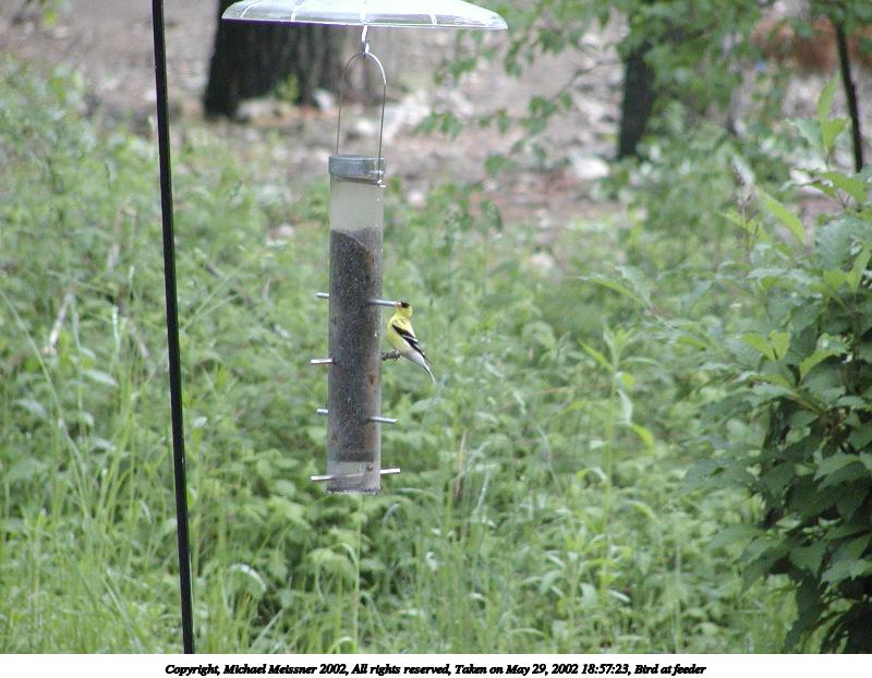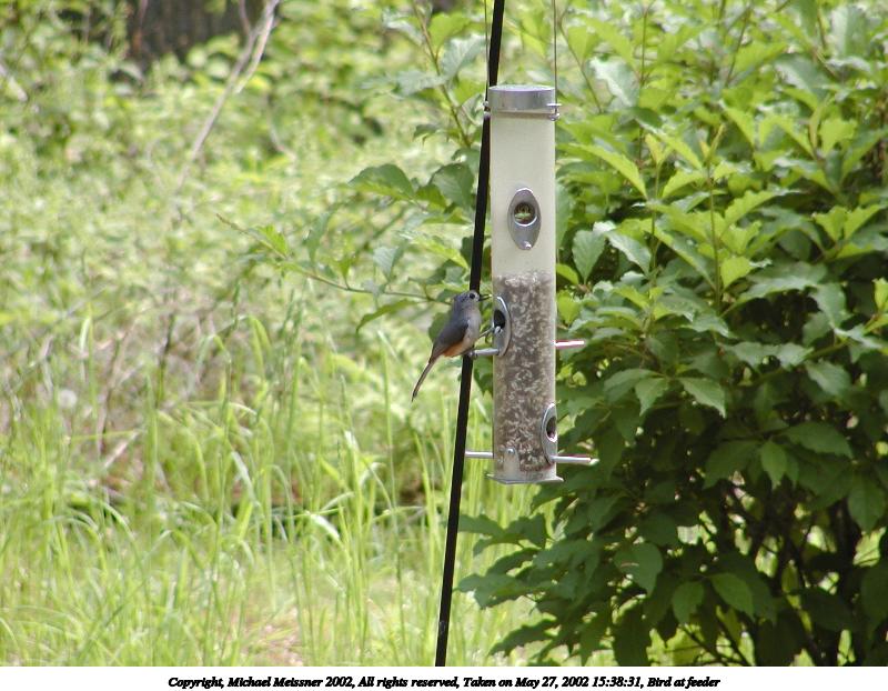 Picture #72: Bird at feeder #3 800x622, 68,561 bytes (67K), (html file) Copyright, Michael Meissner 2002, All rights reserved Olympus C-2100UZ camera f/3.5, ISO 100, 1/100 sec, 70.0mm, auto mode, SHQ, matrix metering 35mm equivalent focal length 388.0mm Taken by Michael Meissner on May 18, 2002 17:35:14 Last modified on May 29, 2002 at 21:31 |