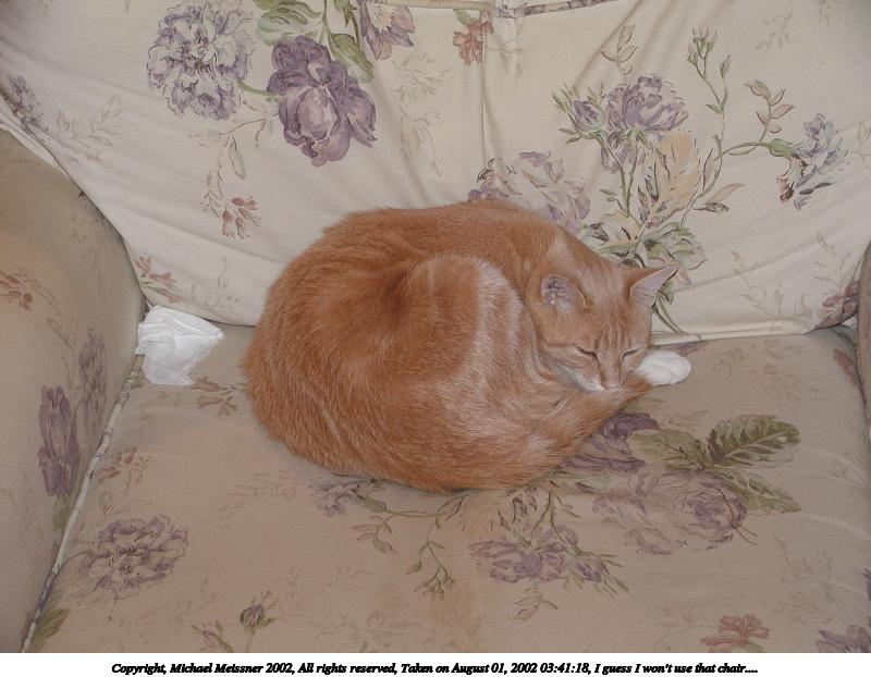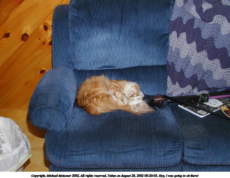 Picture #71: Hey, I was going to sit there! 800x622, 110,954 bytes (109K), (html file) Copyright, Michael Meissner 2002, All rights reserved Olympus C-2100UZ camera f/5.6, ISO 100, 1/125 sec, 9.4mm, manual mode, SHQ, matrix metering 35mm equivalent focal length 52.0mm Taken by Michael Meissner on August 28, 2002 00:19:54 Last modified on August 28, 2002 at 21:04 Shutter speed of 1/125 or 1/250 may indicate use of flash |