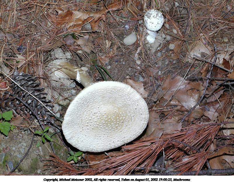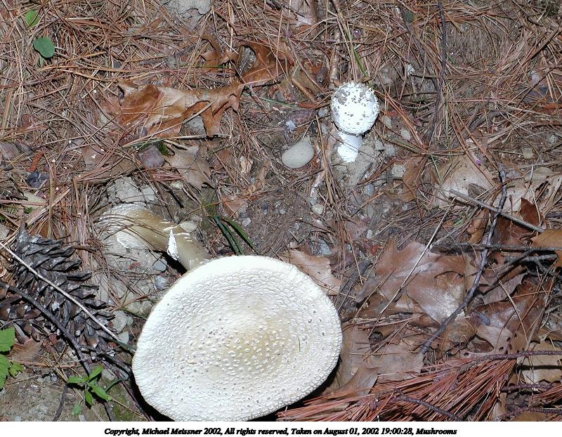 Picture #201: Mushrooms #2 800x622, 188,576 bytes (185K), (html file) Copyright, Michael Meissner 2002, All rights reserved Olympus C-2100UZ camera f/5.0, ISO 100, 1/125 sec, 24.2mm, manual mode, SHQ, matrix metering 35mm equivalent focal length 134.0mm Taken by Michael Meissner on August 01, 2002 19:00:28 Last modified on August 01, 2002 at 19:49 Shutter speed of 1/125 or 1/250 may indicate use of flash |