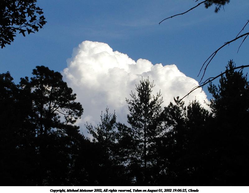 Picture #180: Clouds #7 800x676, 122,646 bytes (120K), (html file) Copyright, Michael Meissner 2002, All rights reserved Olympus C-2100UZ camera f/3.5, ISO 100, 1/400 sec, 9.7mm, auto mode, SHQ, matrix metering 35mm equivalent focal length 54.0mm Taken by Michael Meissner on August 06, 2002 12:57:52 Last modified on August 06, 2002 at 17:47 |