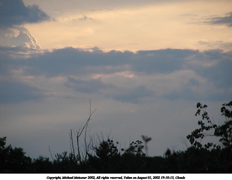 Picture #181: Clouds #6 800x622, 103,229 bytes (101K), (html file) Copyright, Michael Meissner 2002, All rights reserved Olympus C-2100UZ camera f/4.0, ISO 100, 1/500 sec, 9.7mm, auto mode, SHQ, matrix metering 35mm equivalent focal length 54.0mm Taken by Michael Meissner on August 06, 2002 12:57:17 Last modified on August 06, 2002 at 17:45 |