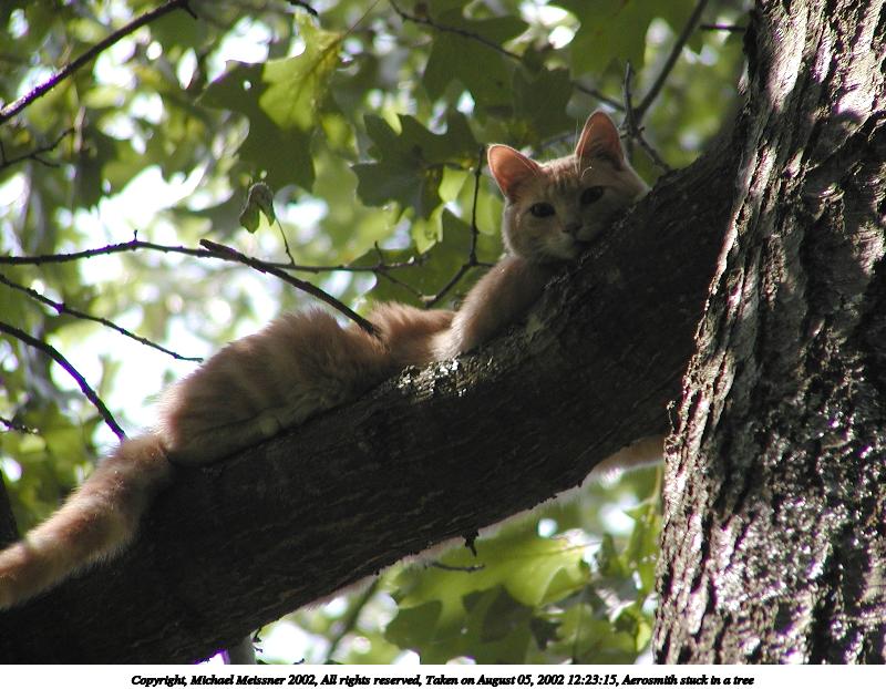 Picture #184: Aerosmith stuck in a tree #3 600x822, 132,052 bytes (129K), (html file) Copyright, Michael Meissner 2002, All rights reserved Olympus C-2100UZ camera f/2.8, ISO 100, 1/250 sec, 20.7mm, auto mode, SHQ, matrix metering 35mm equivalent focal length 115.0mm Taken by Michael Meissner on August 05, 2002 12:12:20 Last modified on August 05, 2002 at 12:55 Shutter speed of 1/125 or 1/250 may indicate use of flash |
