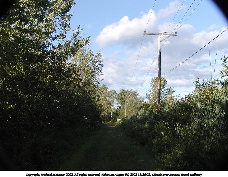 Picture #178: Clouds over Bennets Brook walkway 800x622, 115,046 bytes (113K), (html file) Copyright, Michael Meissner 2002, All rights reserved Olympus C-2100UZ camera f/4.5, ISO 100, 1/500 sec, 9.7mm, auto mode, SHQ, matrix metering 35mm equivalent focal length 54.0mm Taken by Michael Meissner on August 06, 2002 18:26:22 Last modified on August 06, 2002 at 18:52 |