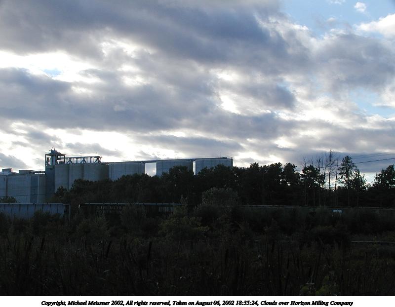 Picture #176: Clouds over Horizon Milling Company 800x622, 57,366 bytes (57K), (html file) Copyright, Michael Meissner 2002, All rights reserved Olympus C-2100UZ camera f/5.0, ISO 100, 1/500 sec, 12.7mm, auto mode, SHQ, matrix metering 35mm equivalent focal length 70.0mm Taken by Michael Meissner on August 06, 2002 18:35:24 Last modified on August 06, 2002 at 18:55 |