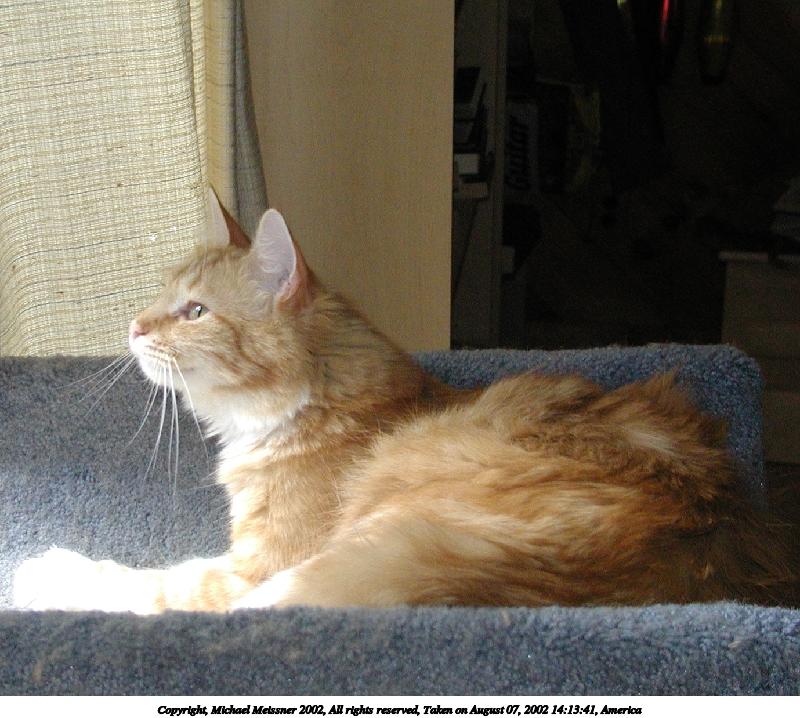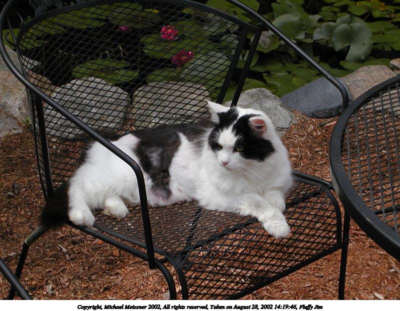 Picture #16: Fluffy Jim #4 800x622, 115,824 bytes (114K), (html file) Copyright, Michael Meissner 2002, All rights reserved Olympus C-2100UZ camera f/4.5, ISO 100, 1/650 sec, 17.3mm, auto mode, SHQ, matrix metering 35mm equivalent focal length 96.0mm Taken by Michael Meissner on August 28, 2002 14:20:01 Last modified on August 28, 2002 at 21:44 |