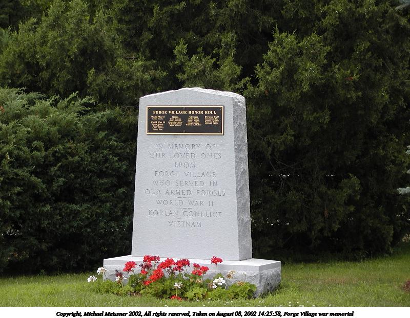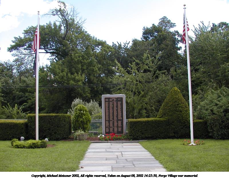 Picture #164: Forge Village war memorial #3 600x822, 94,363 bytes (93K), (html file) Copyright, Michael Meissner 2002, All rights reserved Olympus C-2100UZ camera f/4.5, ISO 100, 1/650 sec, 7.3mm, auto mode, SHQ, matrix metering 35mm equivalent focal length 41.0mm Taken by Michael Meissner on August 08, 2002 14:26:29 Last modified on August 08, 2002 at 16:29 |