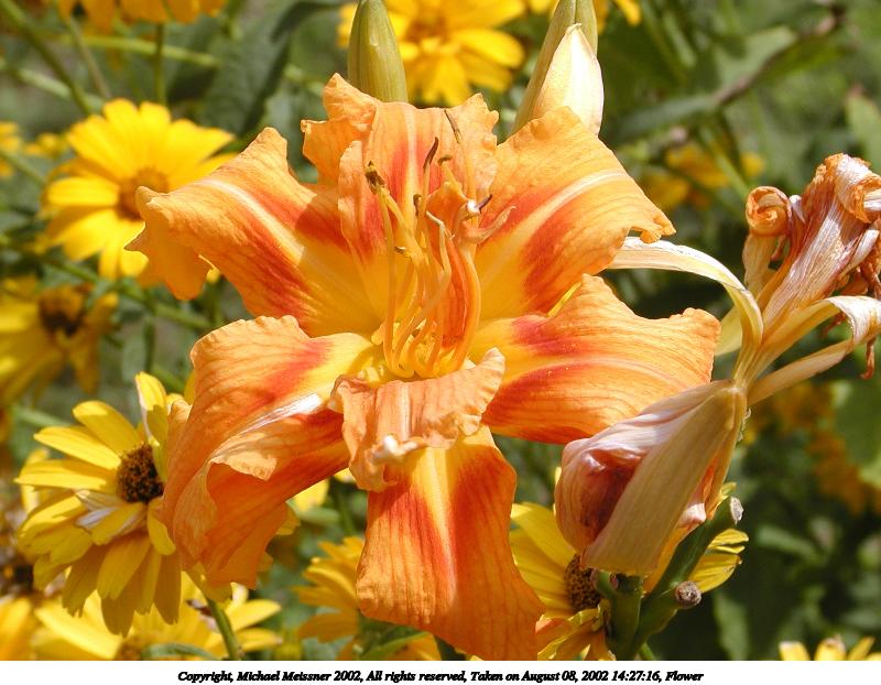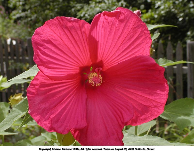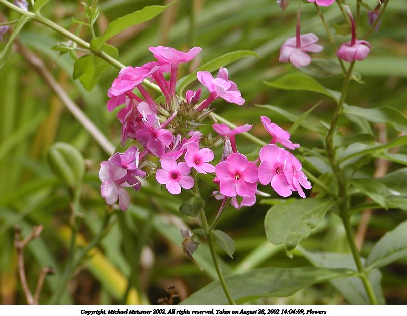 Picture #34: Flowers 600x822, 78,087 bytes (77K), (html file) Copyright, Michael Meissner 2002, All rights reserved Olympus C-2100UZ camera f/5.0, ISO 100, 1/125 sec, 28.5mm, s-prog mode, SHQ, matrix metering, bias -0.3 35mm equivalent focal length 158.0mm Taken by Michael Meissner on August 28, 2002 14:03:25 Last modified on August 28, 2002 at 21:32 Shutter speed of 1/125 or 1/250 may indicate use of flash |