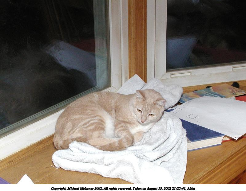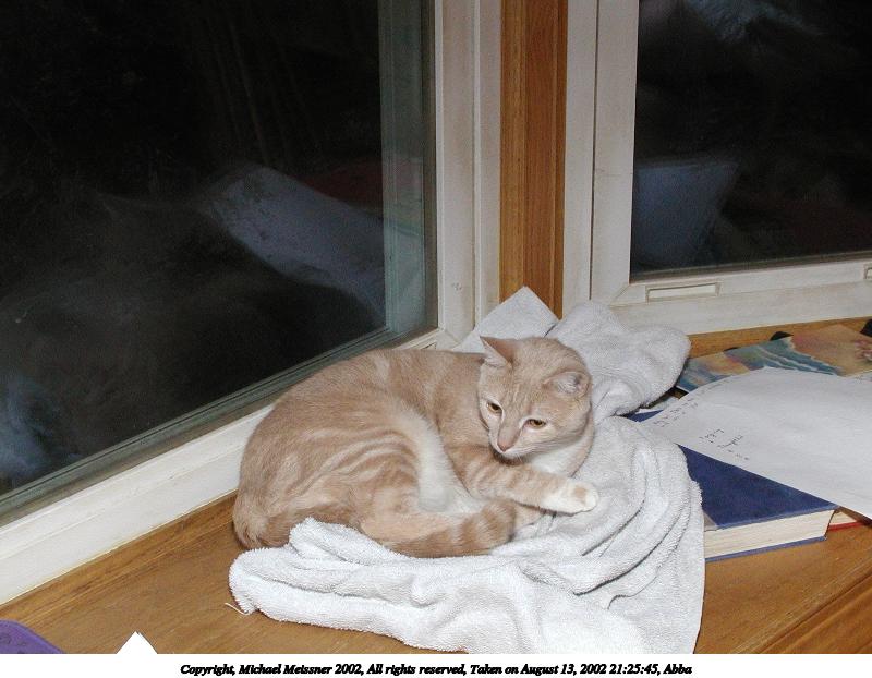 Picture #147: Abba #2 800x622, 84,477 bytes (83K), (html file) Copyright, Michael Meissner 2002, All rights reserved Olympus C-2100UZ camera f/5.6, ISO 100, 1/125 sec, 25.2mm, manual mode, SHQ, matrix metering 35mm equivalent focal length 140.0mm Taken by Michael Meissner on August 12, 2002 09:04:22 Last modified on August 12, 2002 at 23:26 Shutter speed of 1/125 or 1/250 may indicate use of flash |