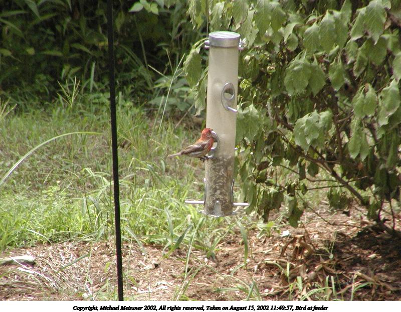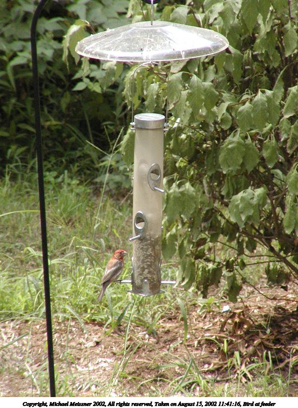 Picture #125: Bird at feeder #2 600x822, 120,185 bytes (118K), (html file) Copyright, Michael Meissner 2002, All rights reserved Olympus C-2100UZ camera f/5.0, ISO 400, 1/400 sec, 70.0mm, auto mode, SHQ, matrix metering, bias -0.3 35mm equivalent focal length 388.0mm Taken by Michael Meissner on August 15, 2002 11:41:16 Last modified on August 15, 2002 at 23:03 |