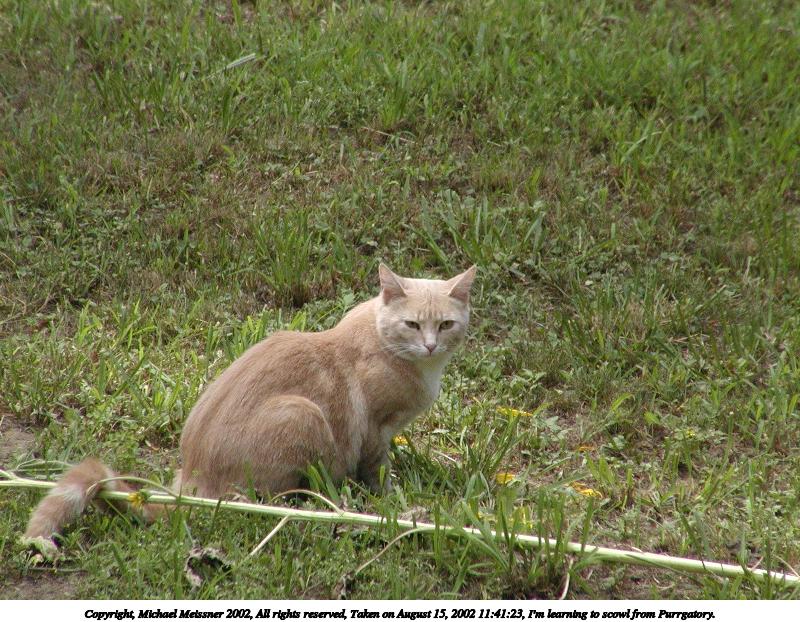 Picture #124: I'm learning to scowl from Purrgatory. 800x622, 136,796 bytes (134K), (html file) Copyright, Michael Meissner 2002, All rights reserved Olympus C-2100UZ camera f/4.5, ISO 400, 1/650 sec, 70.0mm, auto mode, SHQ, matrix metering, bias -0.3 35mm equivalent focal length 388.0mm Taken by Michael Meissner on August 15, 2002 11:41:23 Last modified on August 15, 2002 at 23:04 |