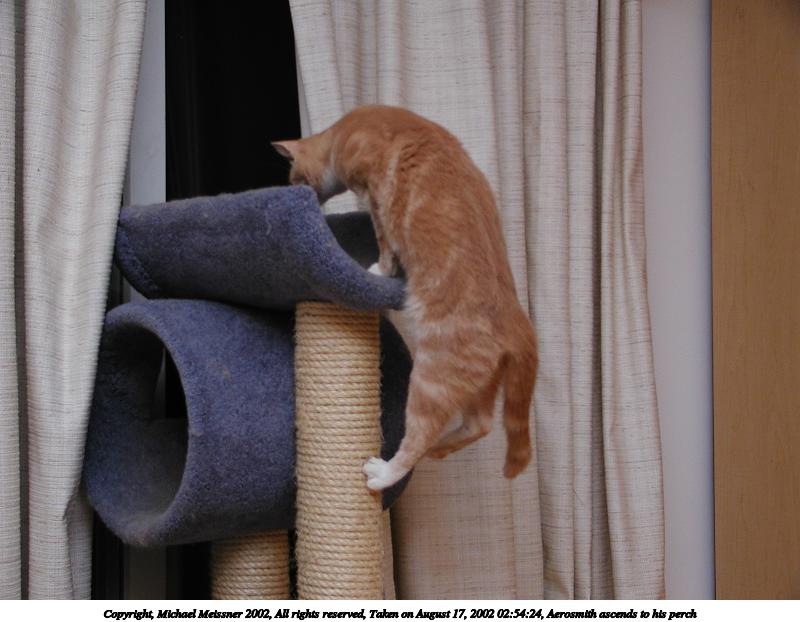 Picture #118: Aerosmith ascends to his perch 800x622, 64,801 bytes (64K), (html file) Copyright, Michael Meissner 2002, All rights reserved Olympus C-2100UZ camera f/2.8, ISO 100, 1/125 sec, 13.0mm, manual mode, SHQ, matrix metering 35mm equivalent focal length 72.0mm Taken by Michael Meissner on August 17, 2002 02:54:24 Last modified on August 18, 2002 at 00:48 Shutter speed of 1/125 or 1/250 may indicate use of flash |