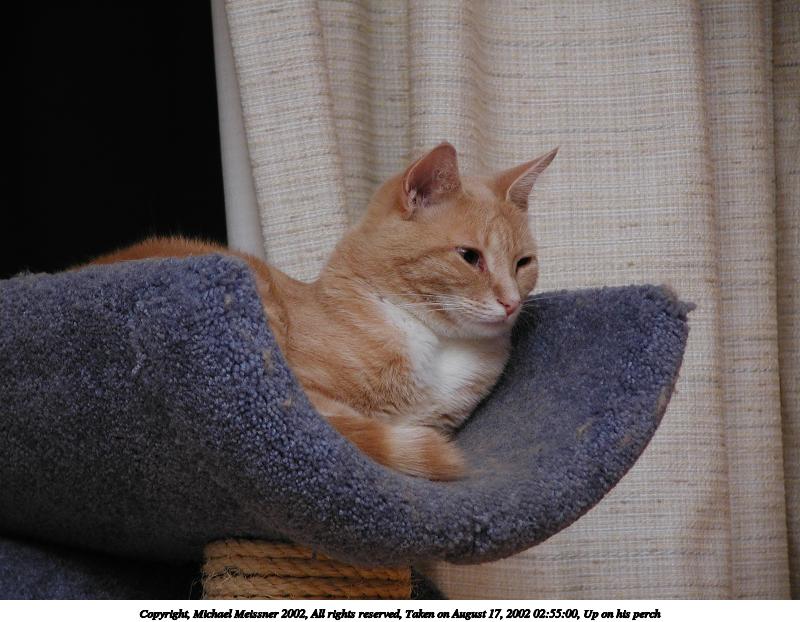 Picture #116: Up on his perch 800x622, 80,590 bytes (79K), (html file) Copyright, Michael Meissner 2002, All rights reserved Olympus C-2100UZ camera f/2.8, ISO 100, 1/125 sec, 32.5mm, manual mode, SHQ, matrix metering 35mm equivalent focal length 180.0mm Taken by Michael Meissner on August 17, 2002 02:55:00 Last modified on August 18, 2002 at 00:52 Shutter speed of 1/125 or 1/250 may indicate use of flash |