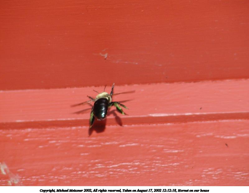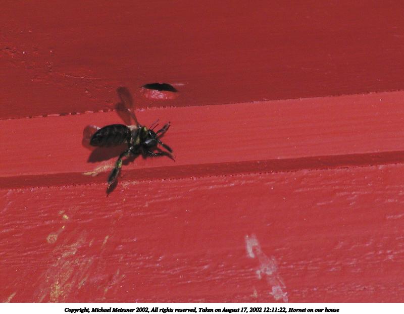 Picture #112: Hornet on our house 800x622, 50,146 bytes (49K), (html file) Copyright, Michael Meissner 2002, All rights reserved Olympus C-2100UZ camera f/5.6, ISO 100, 1/125 sec, 70.0mm, manual mode, SHQ, matrix metering, macro 35mm equivalent focal length 388.0mm Taken by Michael Meissner on August 17, 2002 12:11:22 Last modified on August 18, 2002 at 00:58 Shutter speed of 1/125 or 1/250 may indicate use of flash |