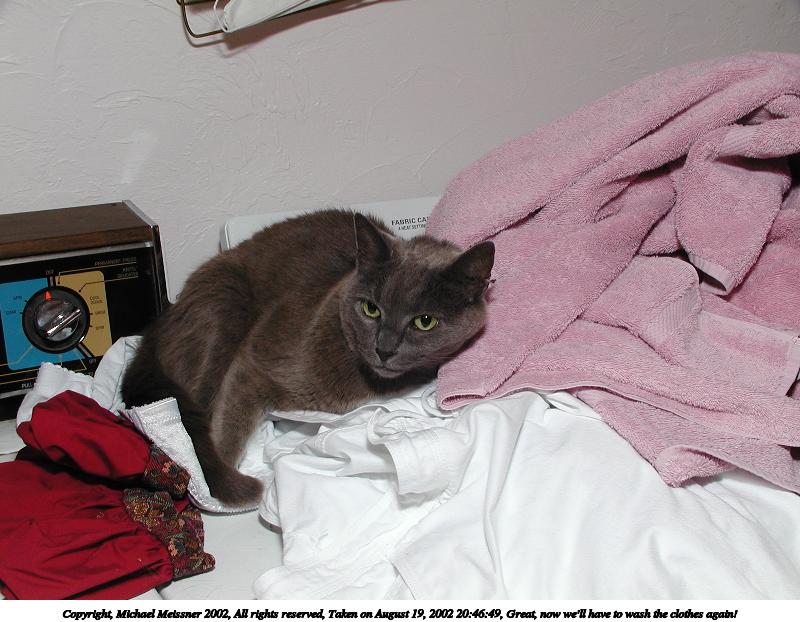 Picture #188: If I sleep on her Renaissance Faire dress, maybe she won't leave me for the day #2 800x644, 76,745 bytes (75K), (html file) Copyright, Michael Meissner 2002, All rights reserved Olympus C-2100UZ camera f/2.8, ISO 100, flash, 1/40 sec, 9.4mm, auto mode, SHQ, matrix metering 35mm equivalent focal length 52.0mm Taken by Michael Meissner on August 04, 2002 14:55:40 Last modified on August 04, 2002 at 18:06 |