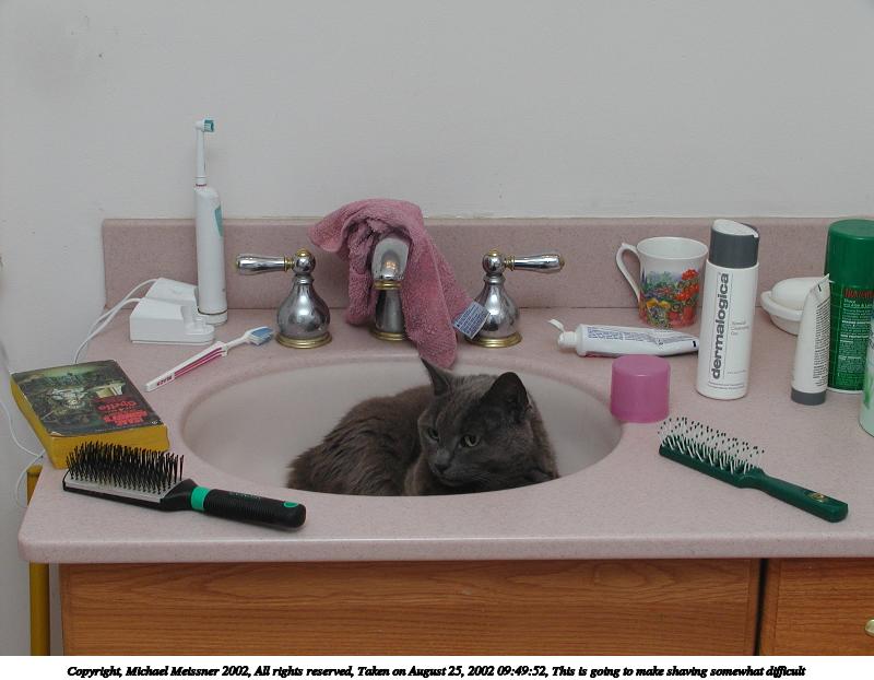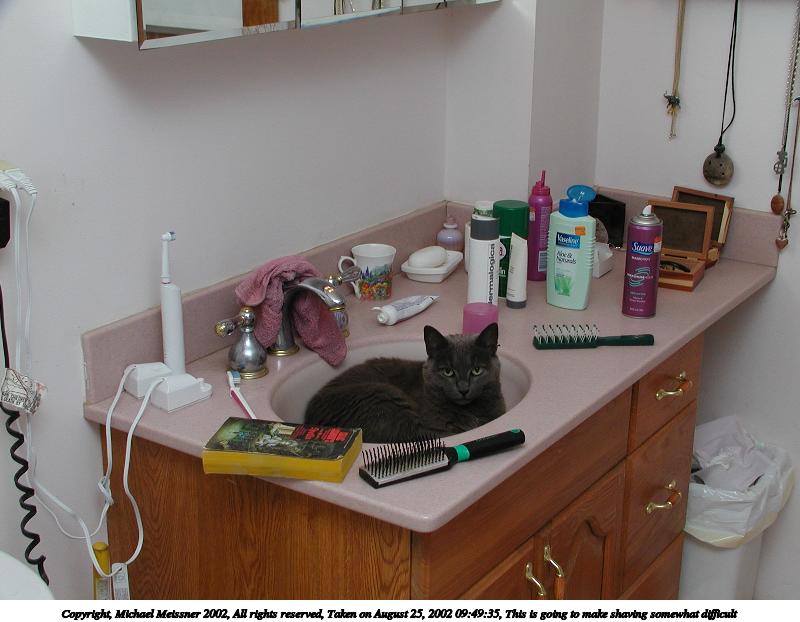 Picture #75: This is going to make shaving somewhat difficult #2 800x622, 59,238 bytes (58K), (html file) Copyright, Michael Meissner 2002, All rights reserved Olympus C-2100UZ camera f/5.6, ISO 100, 1/125 sec, 9.7mm, manual mode, SHQ, matrix metering 35mm equivalent focal length 54.0mm Taken by Michael Meissner on August 25, 2002 09:49:44 Last modified on August 25, 2002 at 12:54 Shutter speed of 1/125 or 1/250 may indicate use of flash |