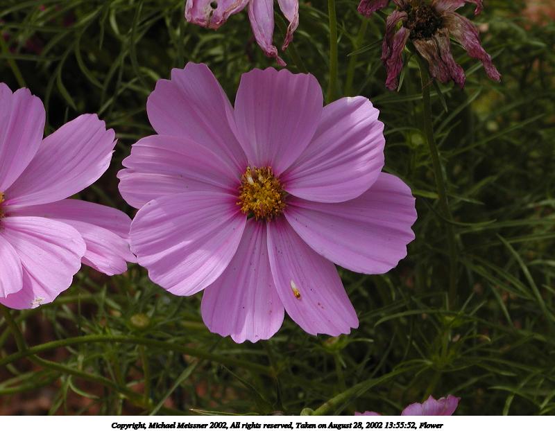 Picture #55: Flower #3 800x622, 83,582 bytes (82K), (html file) Copyright, Michael Meissner 2002, All rights reserved Olympus C-2100UZ camera f/5.6, ISO 100, 1/250 sec, 13.4mm, s-prog mode, SHQ, matrix metering, macro, bias -0.7 35mm equivalent focal length 74.0mm Taken by Michael Meissner on August 28, 2002 13:56:36 Last modified on August 28, 2002 at 21:16 Shutter speed of 1/125 or 1/250 may indicate use of flash |