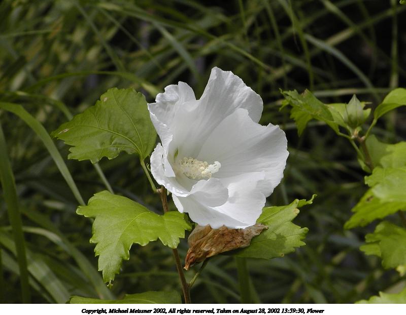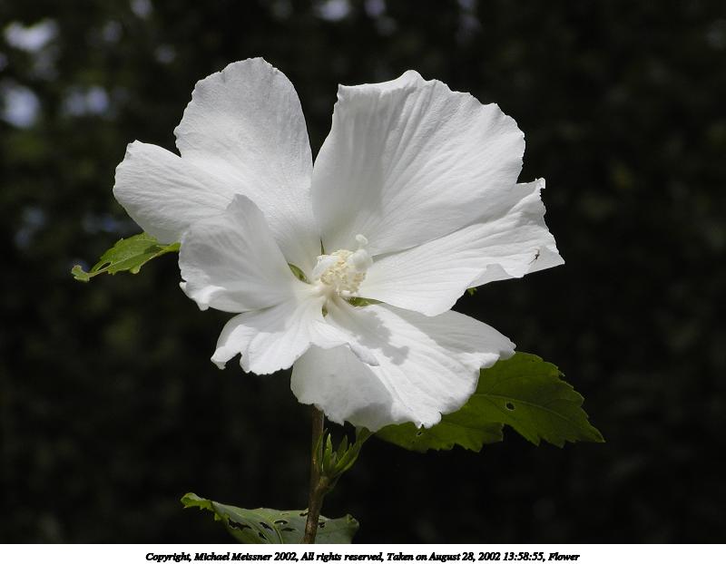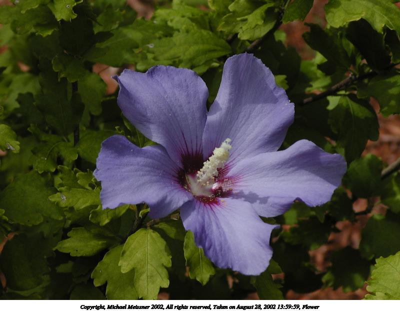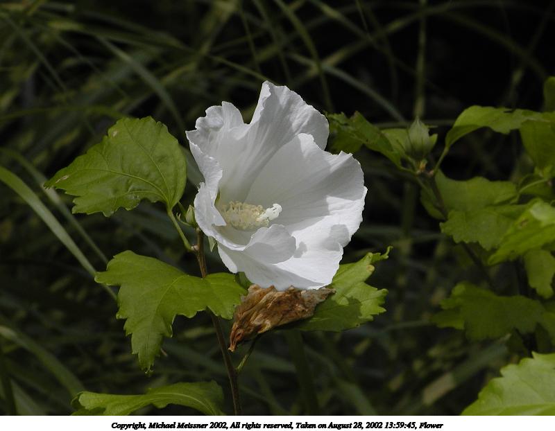 Picture #43: Flower #14 800x622, 77,875 bytes (77K), (html file) Copyright, Michael Meissner 2002, All rights reserved Olympus C-2100UZ camera f/5.6, ISO 100, 1/250 sec, 17.9mm, s-prog mode, SHQ, matrix metering, macro, bias -0.7 35mm equivalent focal length 99.0mm Taken by Michael Meissner on August 28, 2002 14:00:30 Last modified on August 28, 2002 at 21:25 Shutter speed of 1/125 or 1/250 may indicate use of flash |