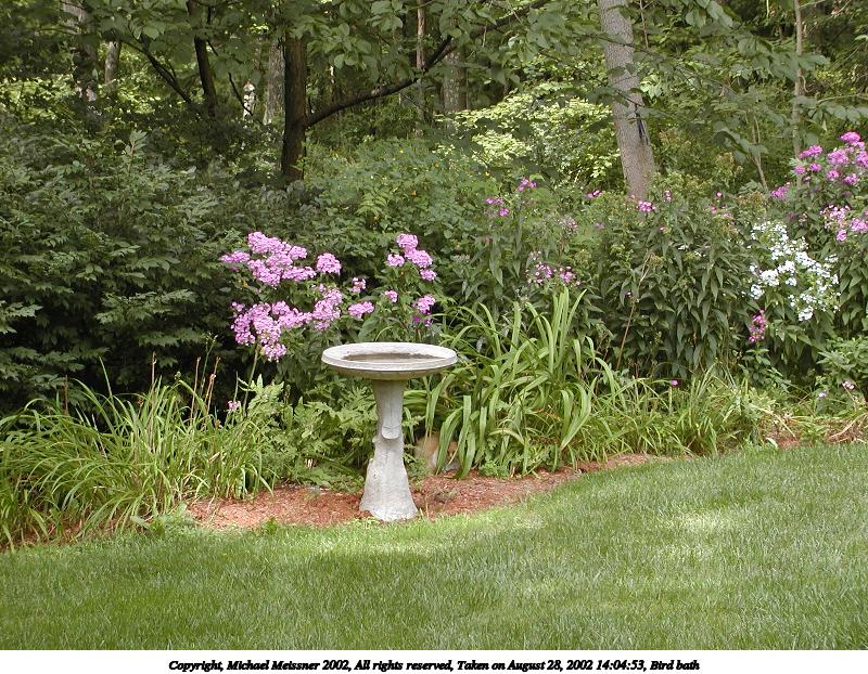 Picture #30: Bird bath 800x622, 174,477 bytes (171K), (html file) Copyright, Michael Meissner 2002, All rights reserved Olympus C-2100UZ camera f/4.0, ISO 100, 1/100 sec, 16.8mm, s-prog mode, SHQ, matrix metering, bias -0.3 35mm equivalent focal length 93.0mm Taken by Michael Meissner on August 28, 2002 14:04:53 Last modified on August 28, 2002 at 21:34 |
