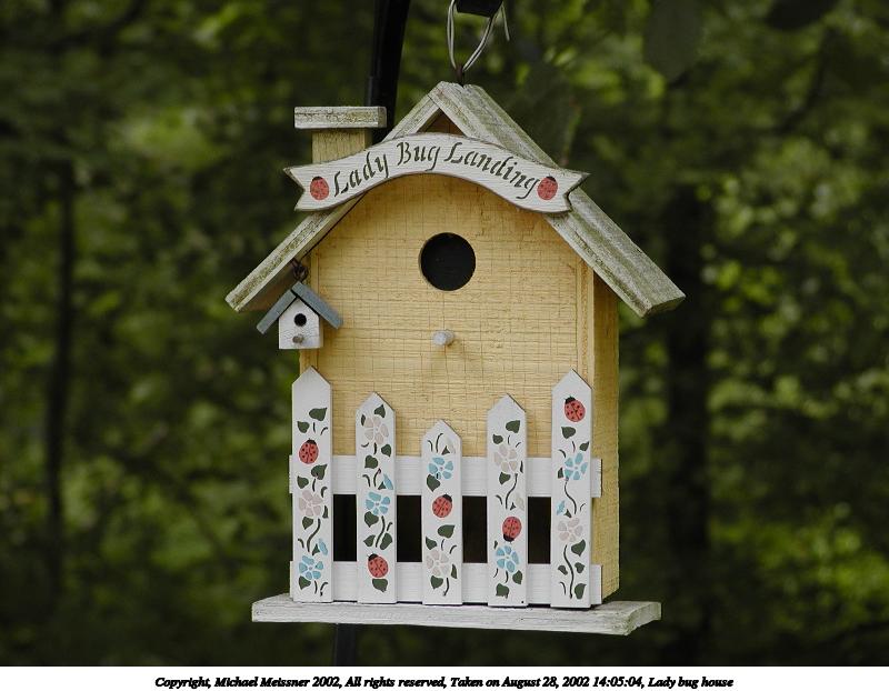 Picture #29: Lady bug house 800x622, 70,018 bytes (69K), (html file) Copyright, Michael Meissner 2002, All rights reserved Olympus C-2100UZ camera f/4.0, ISO 100, 1/200 sec, 32.5mm, s-prog mode, SHQ, matrix metering, bias -0.3 35mm equivalent focal length 180.0mm Taken by Michael Meissner on August 28, 2002 14:05:04 Last modified on August 28, 2002 at 21:34 |