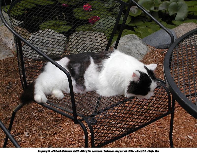 Picture #17: Fluffy Jim #3 800x622, 136,478 bytes (134K), (html file) Copyright, Michael Meissner 2002, All rights reserved Olympus C-2100UZ camera f/4.5, ISO 100, 1/400 sec, 17.3mm, auto mode, SHQ, matrix metering 35mm equivalent focal length 96.0mm Taken by Michael Meissner on August 28, 2002 14:19:52 Last modified on August 28, 2002 at 21:43 |