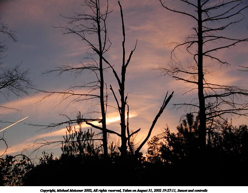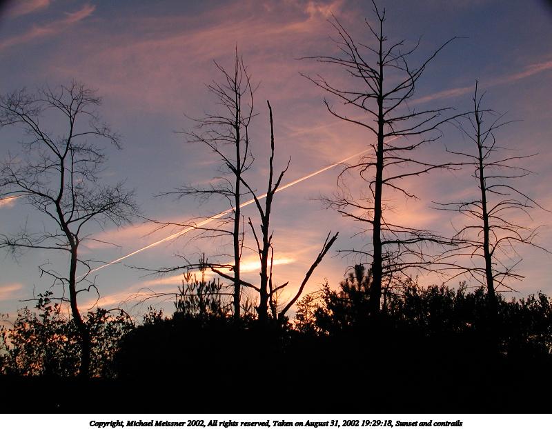 Picture #6: Sunset and contrails 800x622, 91,298 bytes (90K), (html file) Copyright, Michael Meissner 2002, All rights reserved Olympus C-2100UZ camera f/2.8, ISO 100, 1/100 sec, 14.3mm, auto mode, SHQ, matrix metering 35mm equivalent focal length 79.0mm Taken by Michael Meissner on August 31, 2002 19:27:11 Last modified on September 01, 2002 at 00:35 |