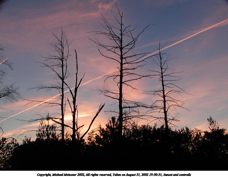 Picture #4: Sunset and contrails #3 600x822, 93,701 bytes (92K), (html file) Copyright, Michael Meissner 2002, All rights reserved Olympus C-2100UZ camera f/5.6, ISO 100, 1/25 sec, 14.3mm, aperture priority, SHQ, matrix metering 35mm equivalent focal length 79.0mm Taken by Michael Meissner on August 31, 2002 19:28:42 Last modified on September 01, 2002 at 00:37 |