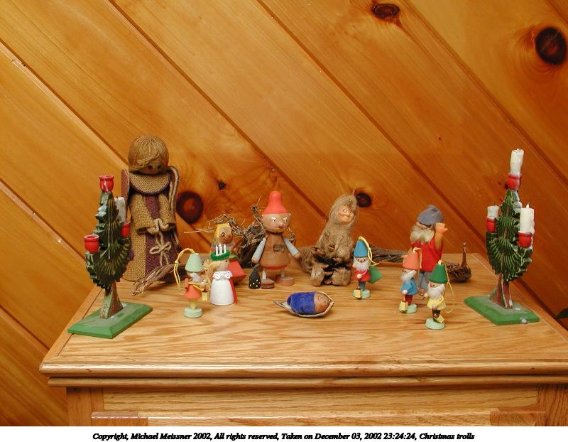 Picture #101: Christmas trolls 800x622, 83,075 bytes (82K), (html file) Copyright, Michael Meissner 2002, All rights reserved Olympus C-2100UZ camera f/8.0, ISO 100, 1/30 sec, 7.8mm, aperture priority, SHQ, cloudy, matrix metering 35mm equivalent focal length 43.0mm Taken by Michael Meissner on December 03, 2002 23:24:24 Last modified on December 04, 2002 at 07:23 |