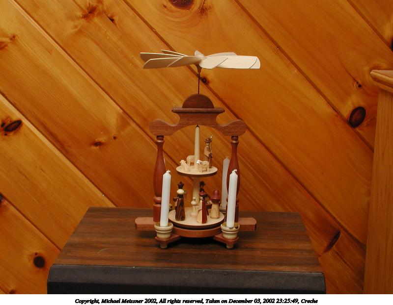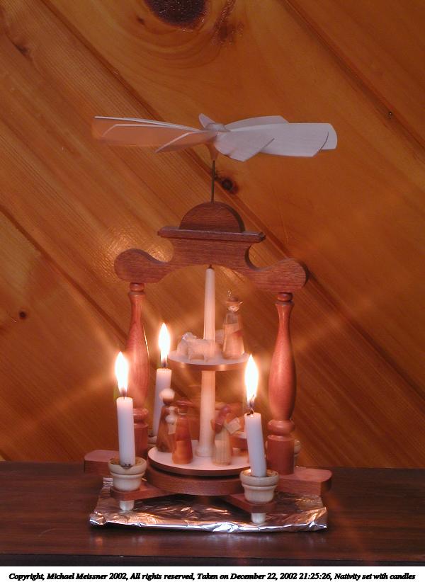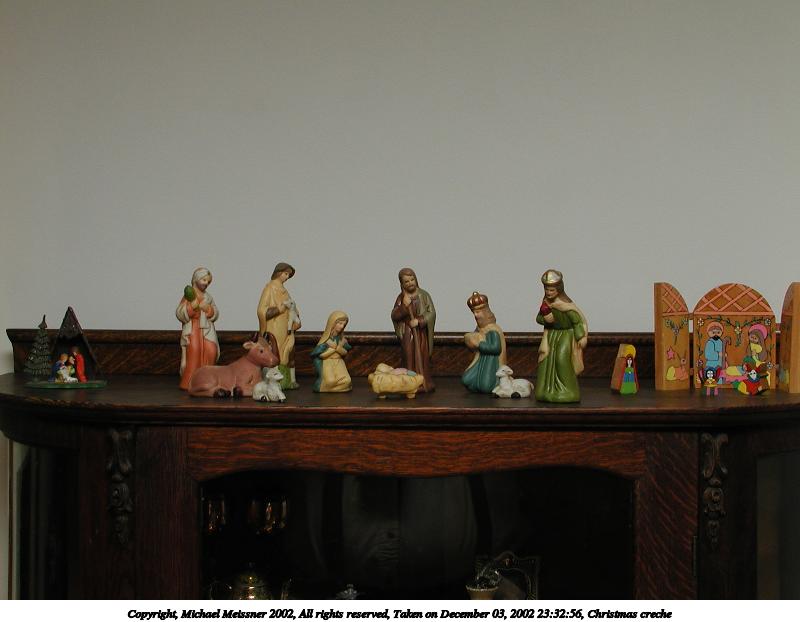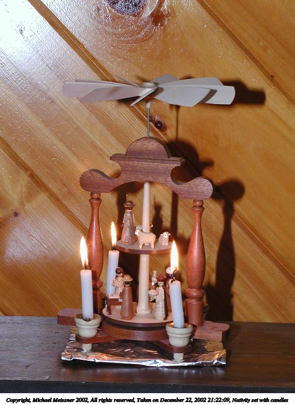 Picture #60: Nativity set with candles #4 600x822, 64,335 bytes (63K), (html file) Copyright, Michael Meissner 2002, All rights reserved Olympus C-2100UZ camera f/8.0, ISO 100, 1/2 sec, 20.7mm, manual mode, SHQ, matrix metering 35mm equivalent focal length 115.0mm Taken by Michael Meissner on December 22, 2002 21:26:49 Last modified on December 24, 2002 at 13:38 |
